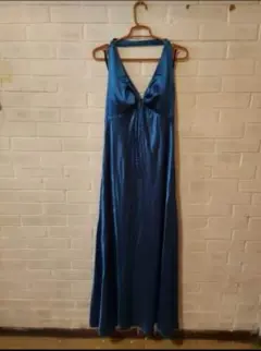 Vestido. Lindo vestido azul satin, tirante al cuello y a media espalda