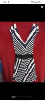 Vestido. Vestido rayado azul con blanco, solo se utilizó una vez, tiene pequeño detalle en el cinturón pero no afecta en nada, está en buen estado, muy bonito.