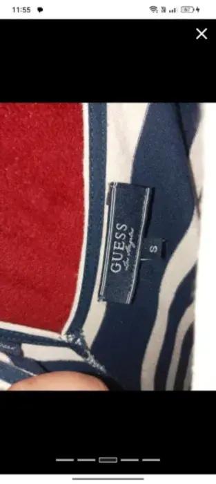 Vestido rayado azul con blanco, solo se utilizó una vez, tiene pequeño detalle en el cinturón pero no afecta en nada, está en buen estado, muy bonito.