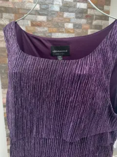 Vestido a capas Nuevo Talla 14. Vestido sin mangas cuello redondo.Marca: Connected ApparealEfecto metálicoTalla 14Medidas:-De hombro a hombro: 38 cms-De sisa a sisa: 50-De cintura: 47 .-De largo: 90 .Es de tela con spandex, por lo que se adapta muy bien a tu cuerpo..Tiene forro y es en capas, lo que le da movimiento a tu figura.Acepto ofertas razonbles!!