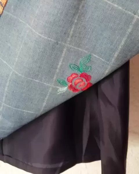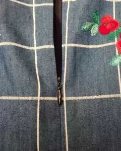Vestido a cuadros con flores bordadas. Producto nuevo. Vestido marca Basel con estampado a cuadros y flores bordadas, cierre invisible, hombros descubiertos y tirante delgado. Talla 36. Forro 100% poliéster, vestido 40% algodón, 60% poliéster.Medidas: ancho busto 52 cm, ancho cintura 45 cm, cadera 55 cm, largo 95 cm.