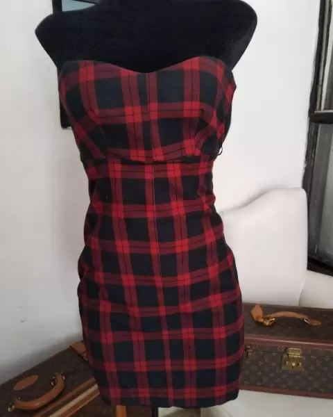 Vestido a cuadros, talla CH. No estira, tiene 2 cierres laterales que facilitan su puesta