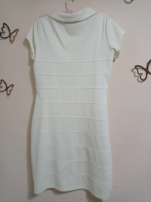 Vestido a la rodilla. Vestido maga corta y detalle cuello, tela strech, es a la rodilla