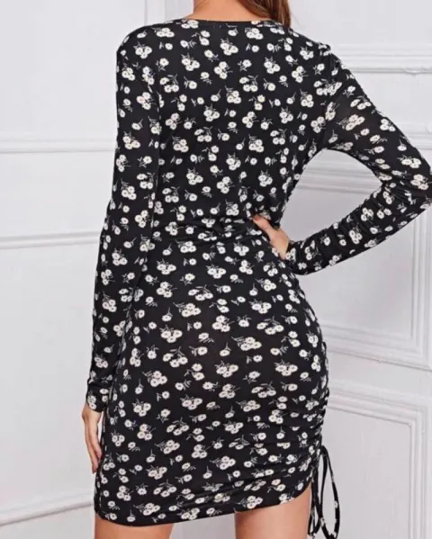 Vestido ajustable de margaritas. Talla: S (Hombro: 36 cm, Pecho: 78 cm, cintura: 67 cm, cadera: 83.5 cm, manga: 59 cm, largo: 82 cm).Si te interesa un paquete házmelo saber, con gusto te lo armamos