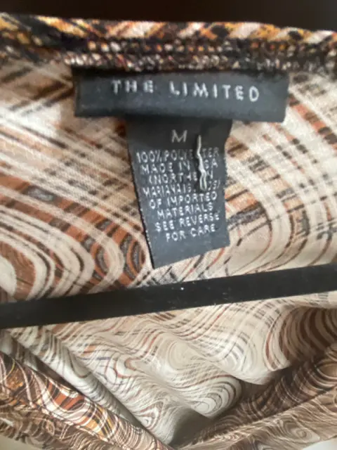 Hermoso vestido ajustable con lazos a la cintura marca The Limited, color café en combinación con beige y negro. 100% poliéster, no se arruga! Talla M, pero tiene la facilidad de que lo puedes ajusta o dejar un poco más suelto. Largo 65cm, cintura 35cm. Aprovecha!!