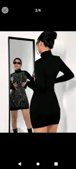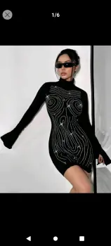 Vestido ajustado .adiamantado por la parte de frente .tela. Likra estira mucho talla mediana ,y grande..no se transparentar