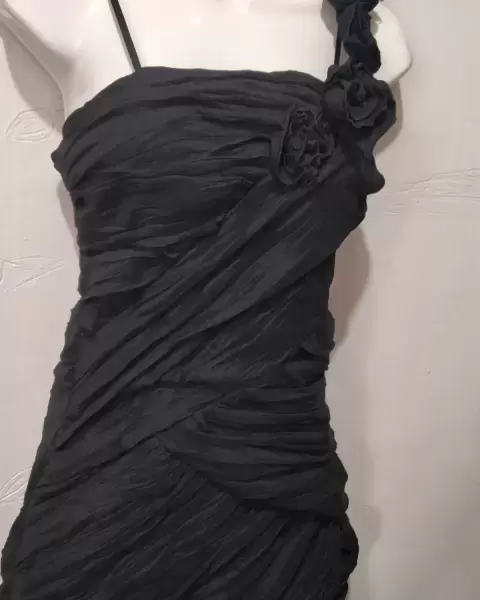 Vestido ajustado decorado con rosas en la parte del pecho y uno de los tirantes. Cierre oculto en la parte de la espalda. Solo se uso una vez.