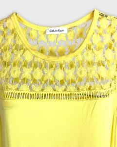 Vestido amarillo Calvin Klein. Vestido de playa con detalles en crochet color amarillo, de tela ligera sin duda te hará lucir muy bien.