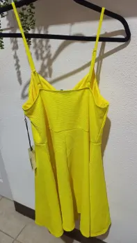 Vestido Amarillo Canario. Hermoso Vestido Nuevo, tiene un lindo escote en v, es una tela cómoda y suave, los tirantes son ajustables. Talla XL. Las medidas son:Largo aprox. 75 cmVuelo del vestido. 1mAxila. 39 cmHombro. 24