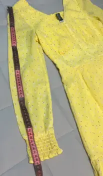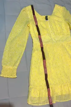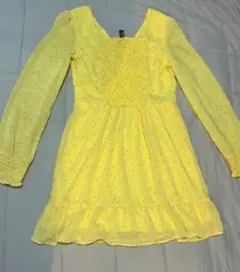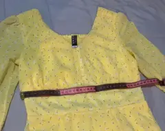 Hermoso vestido color amarillo , con estampado de flores pequeñas .Manga larga .Talla: CHMedidas se encuentran en la publicaciónDelalle : descocido de un costado 2 cm se deja en imágenes