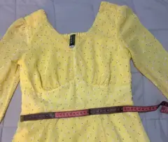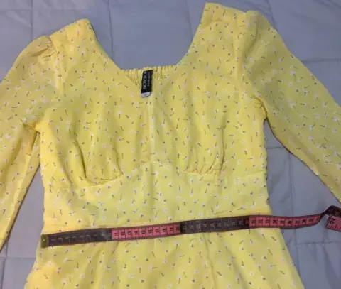 Vestido amarillo con flores 🌺. Hermoso vestido color amarillo , con estampado de flores pequeñas .Manga larga .Talla: CHMedidas se encuentran en la publicaciónDelalle : descocido de un costado 2 cm se deja en imágenes