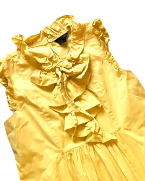 Vestido amarillo Hope & Honey. Vestido de tela sin mangas con lindo detalle de ondulaciones al frente, su color resalta muchísimo tu estilo y elegancia.