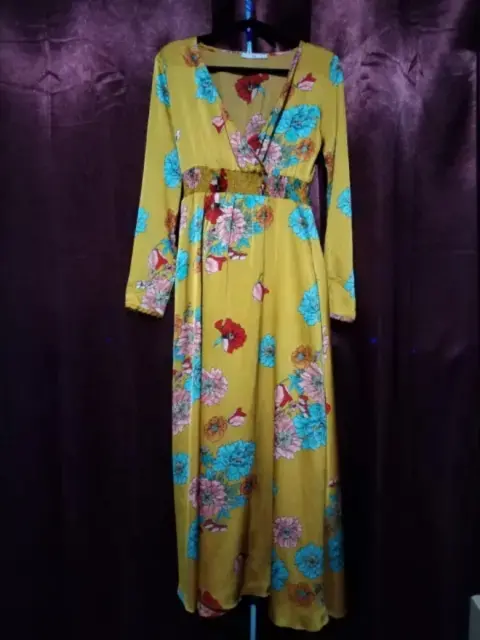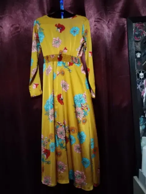 Vestido Amarillo Largo de Seda. Impecable, divino, con estampado de flores. Largo, ligero. Ideal para un desayuno o brunch.