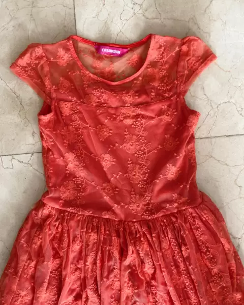 Vestido anaranjado de niña. Hermoso vestido para niña talla 9-10Se uso una sola vez y está precioso Es de Liverpool