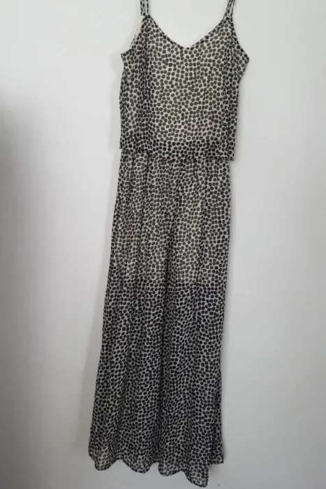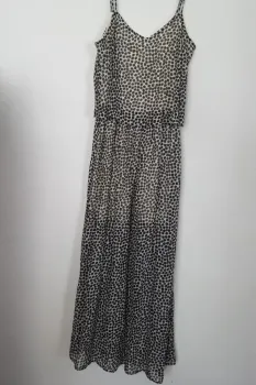 Lo puedes usar tanto para evento forma e informal. Es cómodo y fresco, holgado.Tiene forro color amarillo-crema, no transparenta.El animal print siempre está en tendencia, te va encantar!!Talla:6Largo 135 cmaxila-axila: 44 cm