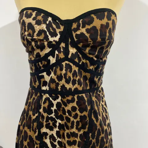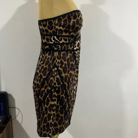 Vestido animal print, marca Sofia, con líneas en listón negro muy femenino.