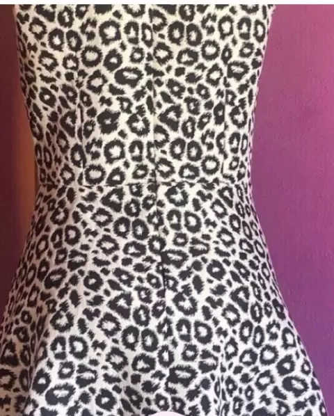 Hermoso vestido animal print falda circular ,sin manga, cuello redondo, cierre oculto. Perfecto para día o noche. Tela de excelente calidad.