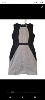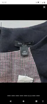 Vestido color vino con negro y blanco Ann Taylor estampado de pata de gallo. Nuevo con etiqueta, talla 2 petite queda a talla S y llega por abajo de la rodilla