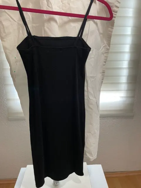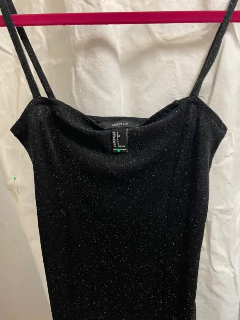 Hermoso vestido de noche o de antro Forever 21 Vestido Negro Brillanté Color Negro Tirantes Talla SMaterial suave y ligero No cierre Stretch Estado Usando una vez Precio 300 Largo Rodilla