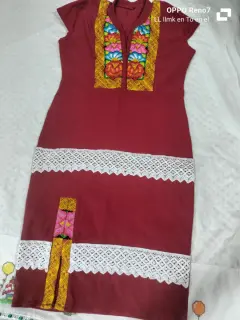Color Rojo ❤️Tela strechBusto 46 CM a 48 CM x2Cintura 38 a 41 CM x2Cadera 46 a 48 cm x2Largo 96 CMPuede dar una talla más, en caso de que lo quieras ajustado..Solo tiene 2 puestas...Elaborado en Oaxaca