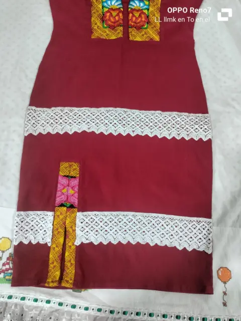 Vestido Artesanal bordado Istmeño. Color Rojo ❤️Tela strechBusto 46 CM a 48 CM x2Cintura 38 a 41 CM x2Cadera 46 a 48 cm x2Largo 96 CMPuede dar una talla más, en caso de que lo quieras ajustado..Solo tiene 2 puestas...Elaborado en Oaxaca