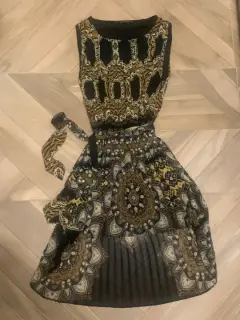 Hermoso vestido asimétrico Marca Sandro Ferrone Roma Con forro Puede usarse con o sin cinturón Una sola puesta Talla M HERMOSO ESTAMPADO