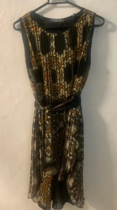 Vestido asimétrico corto. Hermoso vestido asimétrico Marca Sandro Ferrone Roma Con forro Puede usarse con o sin cinturón Una sola puesta Talla M HERMOSO ESTAMPADO