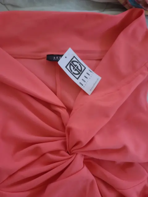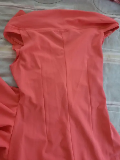 Vestido de tela elástica muy fresca, puede ser de fiesta para playa. el corte asimetrico y tipo de corsé favorecen a las personas de talla grande al disfrazar los rollitos, y simula cintura. Es nuevo pero la tela tiene dos pequeños detalles que se muestran en la foto.