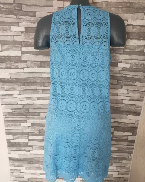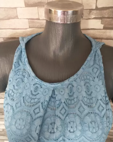 Lindo vestido de encaje amplio los tirantes tienen un detalle lindo cuello redondo con forro sin ningún detalleAzul cielo