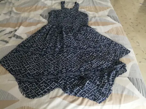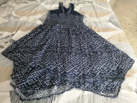 Vestido azul. Hermoso vestido desigual, tela de algodón, resorte en la parte trasera, talla grande