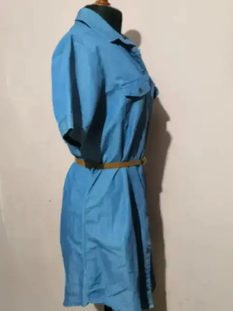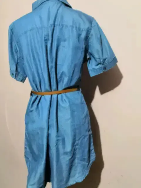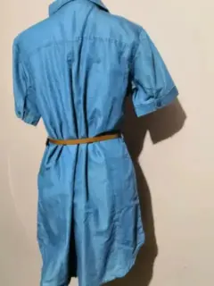 Vestido tipo mezclilla ligera talla 40mx, axila axila mide 62cm, largo 95 CM incluye cinto de la imagen