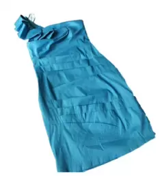 Vestido azul con drapeado talla M. Vestido azul con drapeado al frente de un solo tirante y en el tirante tiene olanes, es corto y muy lindo tela brillosa y con peso. Ideal para primavera verano. Pieza única