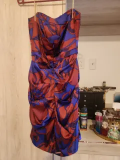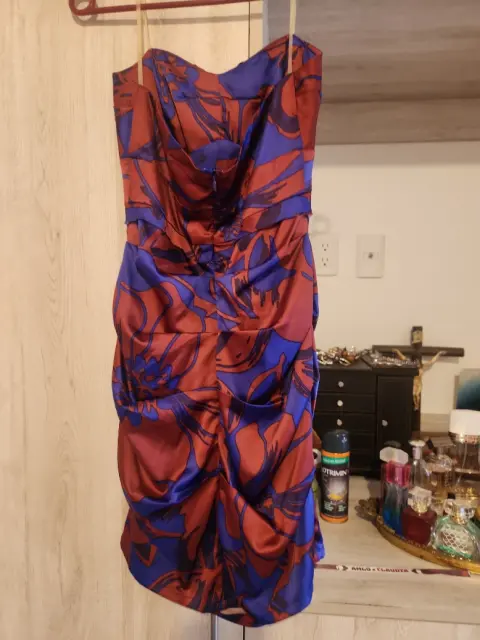 Vestido Azul con Rojo. Vestido hermoso mini de noche, elegante como para playa y una fiesta de tarde.
