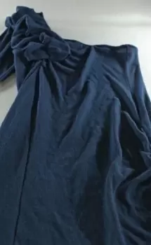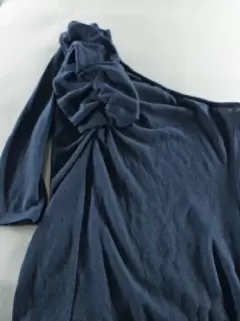 Vestido azul con una sola manga con olanes en el hombro, tela strech, suave, muy lindo y se amolda al cuerpo. Marca Forever21 talla S