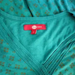 Vestido azul cuello en V, manga larga botones en las mangas 80 cm de largo 50 cm axi-axi 42 cm línea debajo del pecho 60 cm largo de manga
