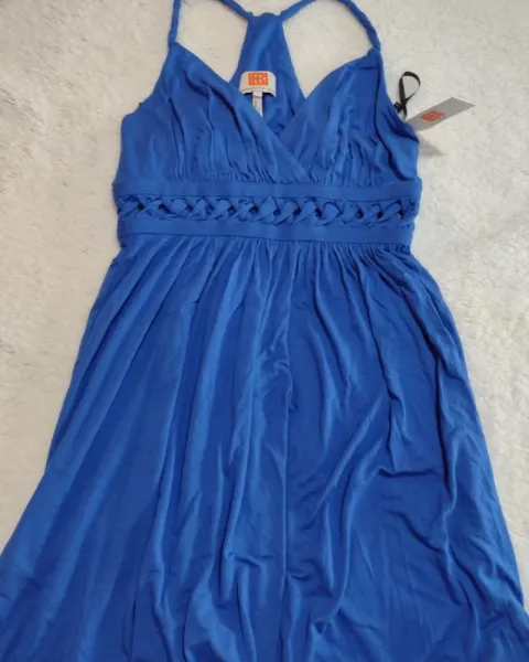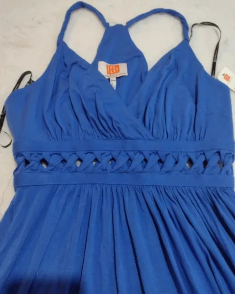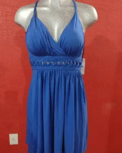 Bonito vestido azul eléctrico, la parte superior es escotadito con tirantes, bajo el busto tiene bonitos detalles que le dan elegancia 💖Es un vestido muy lindo