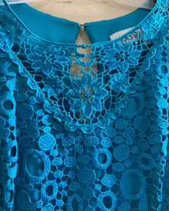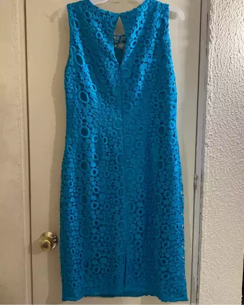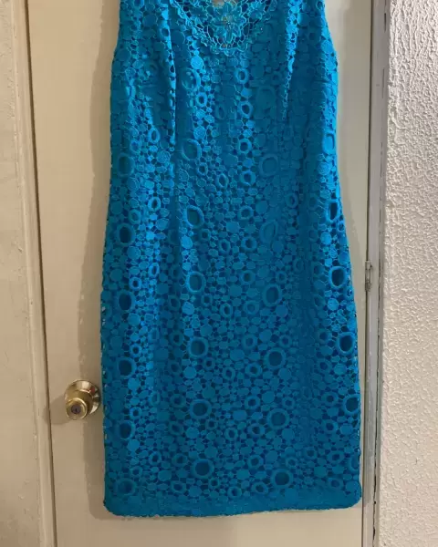Vestido azul encaje. Vestido azul turquesa, tela tipo encaje, da bonita figura,corto, talla 28