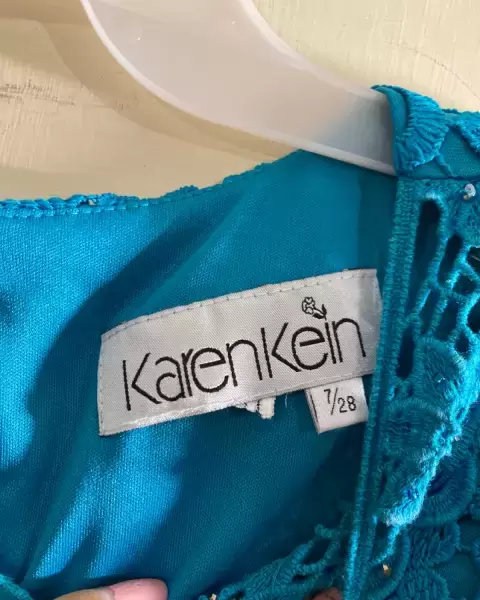 Vestido azul turquesa, tela tipo encaje, da bonita figura,corto, talla 28