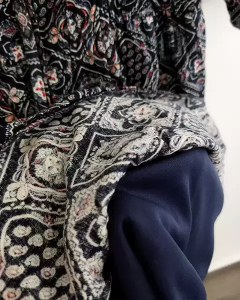 Vestido azul estampado con manga 3/4