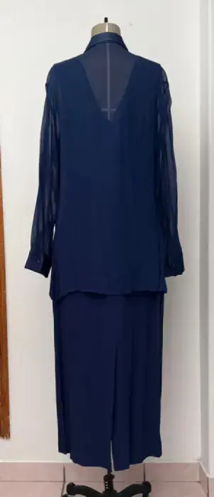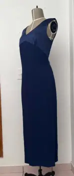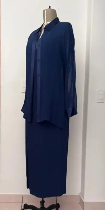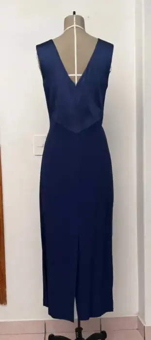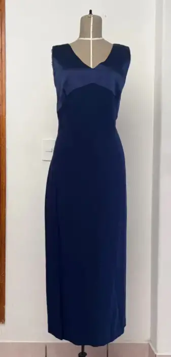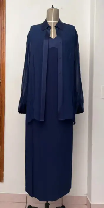 VESTIDO AZUL MARINOJULIO / SIN ETIQUETAS INTERNASTALLA 10 MTELA DE MUY BUENA CALIDAD NO TRANSAPRENTEDETALLES EN SATIN CIERRE TRASEROCAMISA DE MESH CON CUELLO Y CRUCE EN TELA SATINADASE USO UNA SOLA VEZ / EXCELENTES CONDICIONES