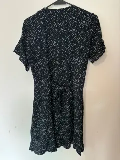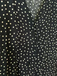 Vestido coqueto y fresco color azul marino con puntos blancos, hace muy bonita forma. Es talla Mediana pero viene reducido. Medidas de axila a axila 41 cm cintura 35 cm largo 80 cm
