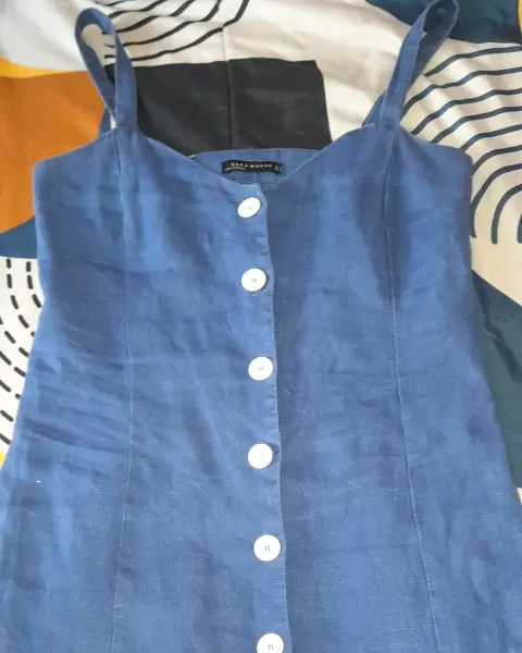Vestido color azul marino se uso una vez, con sus botones completos frente al pecho si ningún detalle. Super bonito!