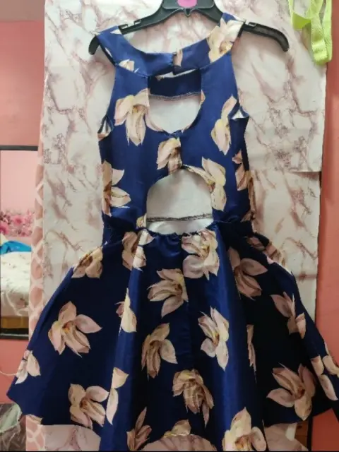 Vestido azul metálico con flores