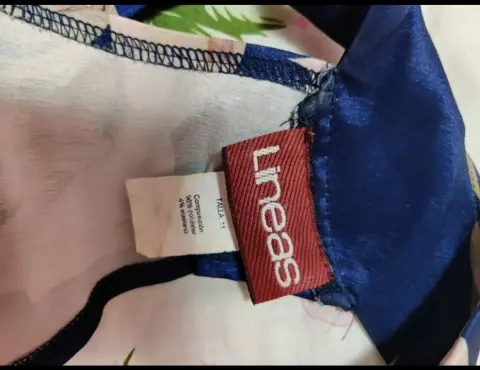 Bonito vestido azul con flores metálicas.Es usado, pero se sigue manteniendo en buen estado.Talla grandeMarca Lineas MX