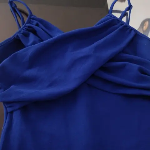 Vestido azul rey corte lápiz. El escote es muy favorecedor, estiliza de maravilla la figura.Está al 100 en su colorTalla chica, estira un pocoNo tiene detalles, está en perfecto estado