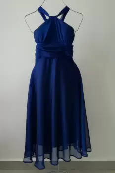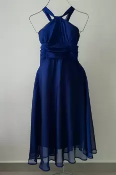 Vestido azul rey halter. Hermoso vestido halter azul marca Connecte Aparel. Fino y elegante diseño con tirantes halter y parte superior ajustada a tu figura. Con plisado en cintura para resaltar figura. Falda amplia con una hermosa caída. Hecho de tela de gasa y con forro.Etiqueta marca talla M, se ajusta mejor a talla Chica.Medidas:Pecho 84 cm ajusta hasta 92 cmCintura 80 cmLargo desde hombros 120 cmLargo desde cintura 87 cmEn perfecto estado. Sin detalles,