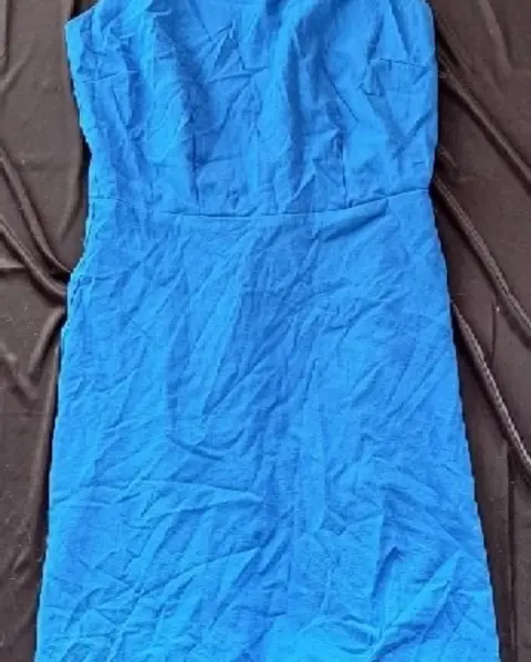 VESTIDO AZUL TALLA S. VESTIDO CASUAL , TALLA S , COLOR AZUL , HOMBRO A HOMBRO 25 CM Y LARGO 97CM , HECHO DE NAYLON , SAPNDEX Y RAYON