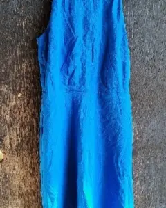 VESTIDO CASUAL , TALLA S , COLOR AZUL , HOMBRO A HOMBRO 25 CM Y LARGO 97CM , HECHO DE NAYLON , SAPNDEX Y RAYON