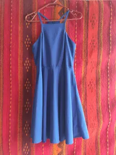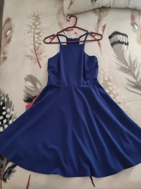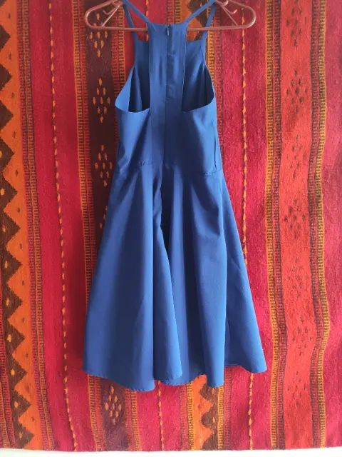 Vestido azul XS. No estiraTalla XsUsado una vezTiene forroCierre en la parte de atrás