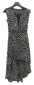 Vestido b y n asimétrico para mujer Dúo Woman. Vestido negro con lunares blancosMarca Dúo Woman Para mujerTalla chica Es asimétrico, corto de enfrente, largo de atrásenfrente tela transparente, lo cual te hace ver muy coquetaLa tela es suaveSe ha usado muy pocas vecesEs ideal para una reunión formal o fiesta.